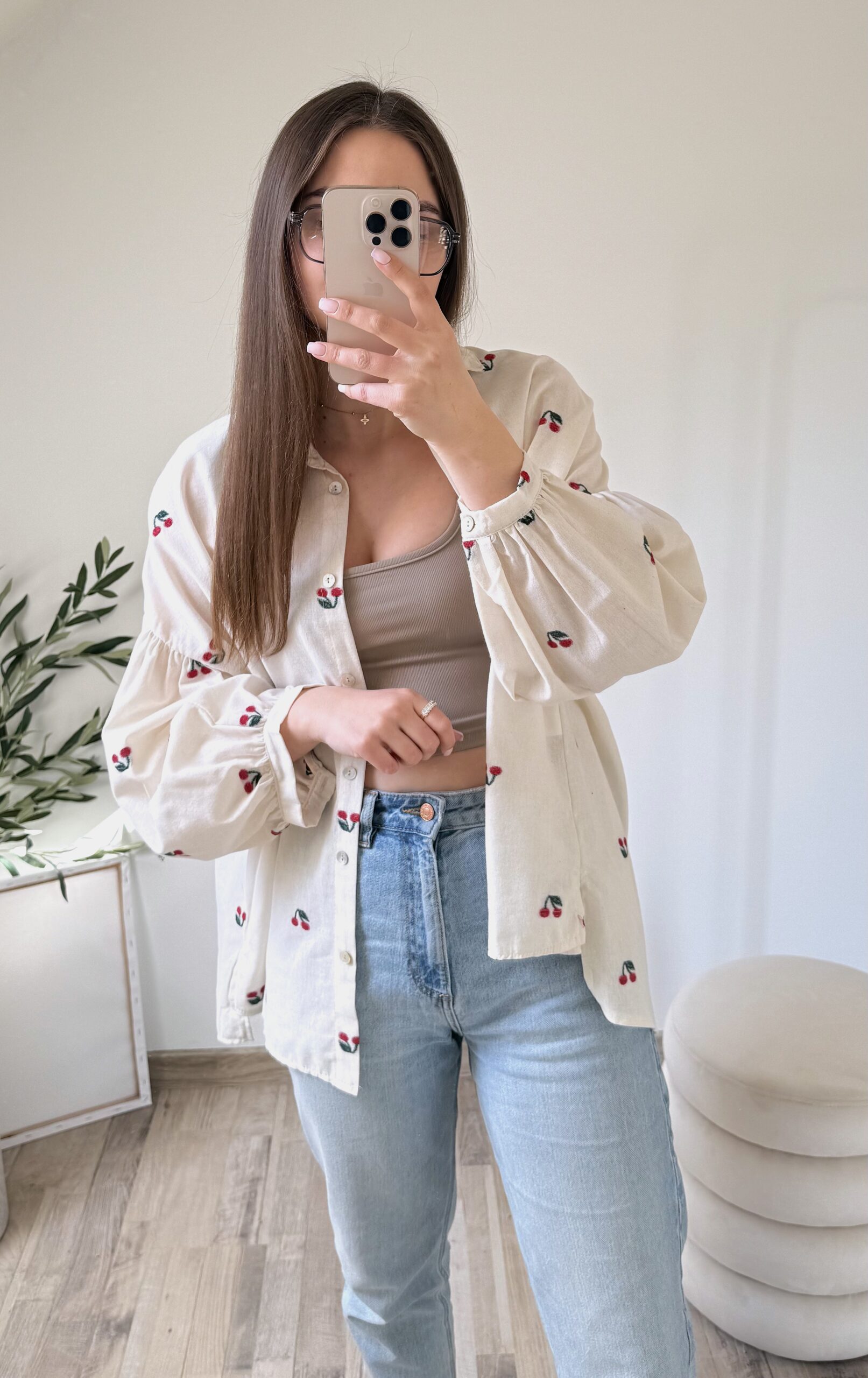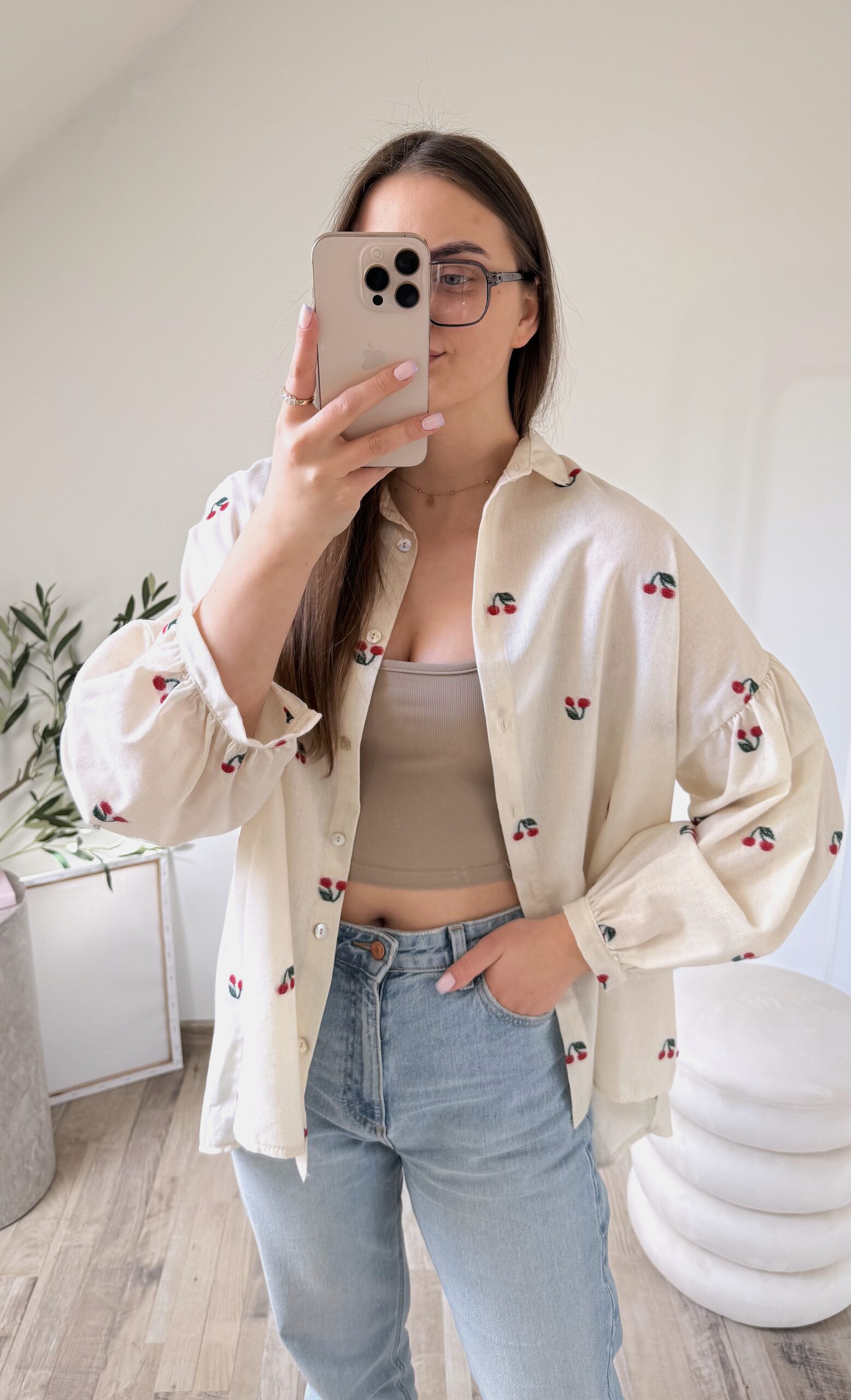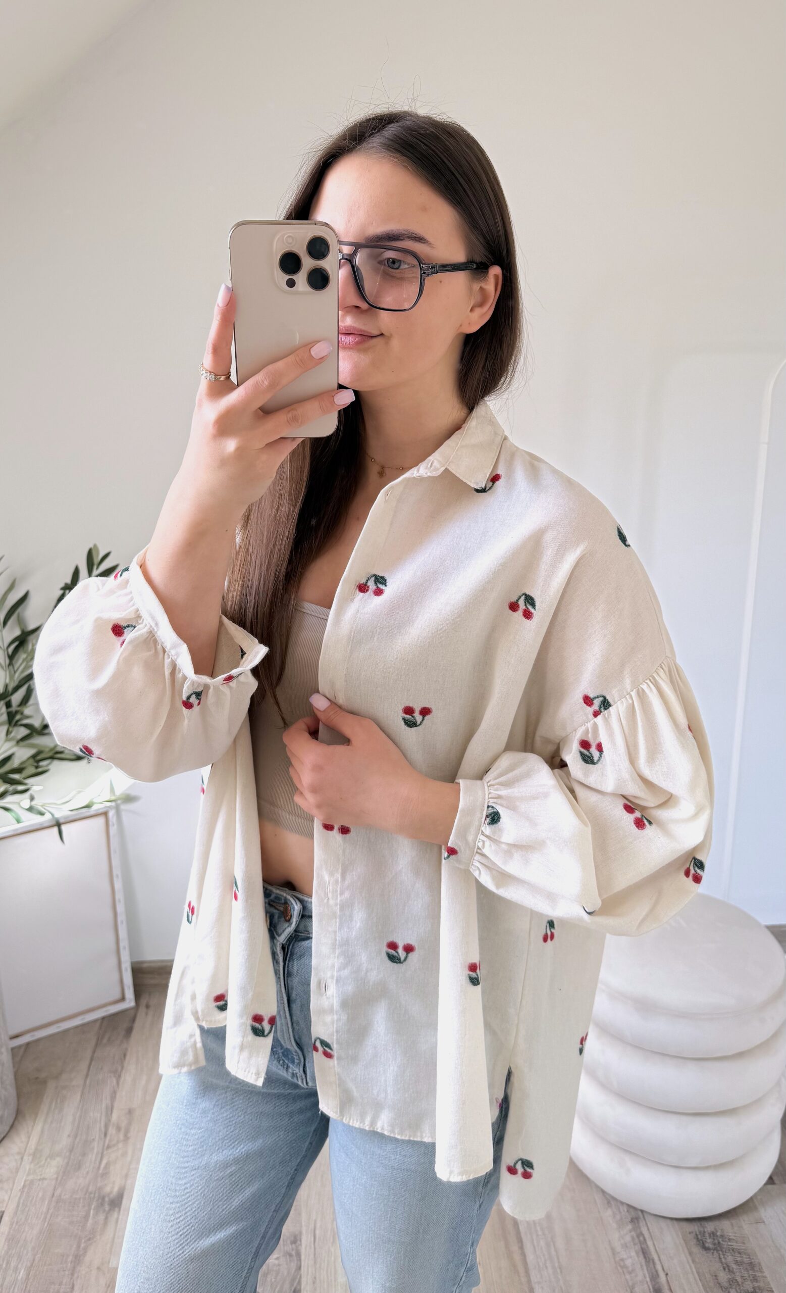 KOSZULA OVERSIZE W HAFTOWANE WISIENKI ♡