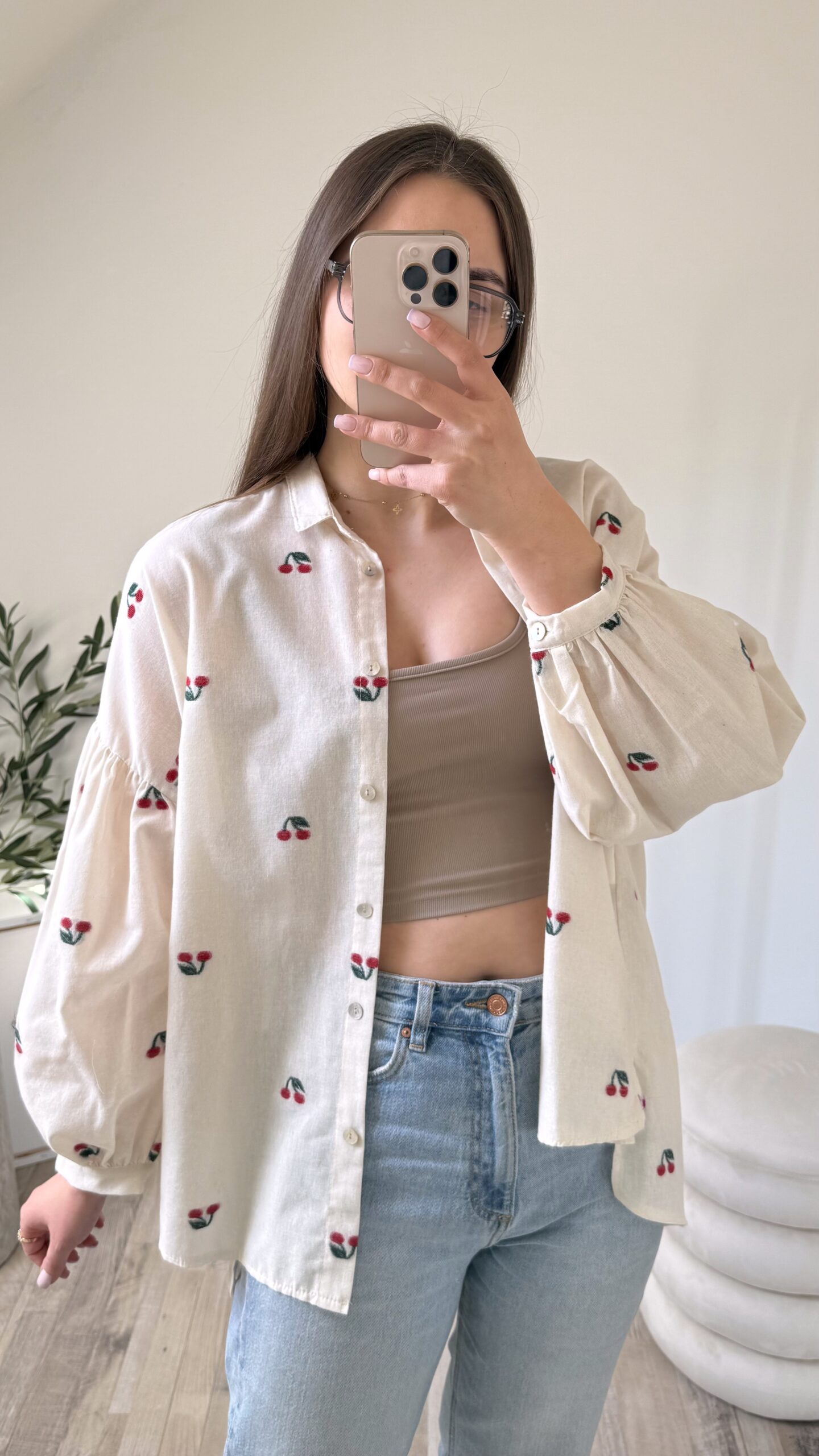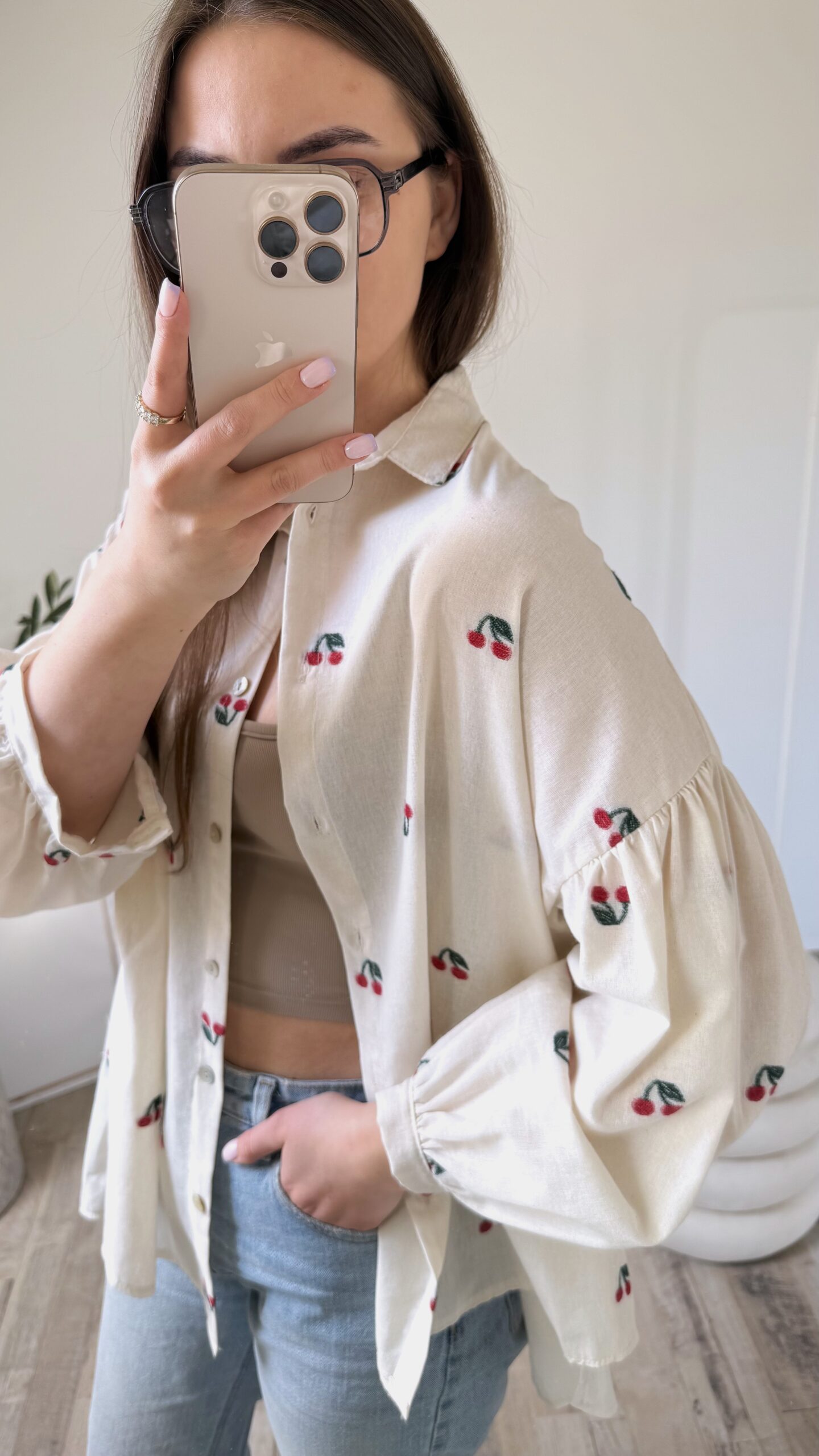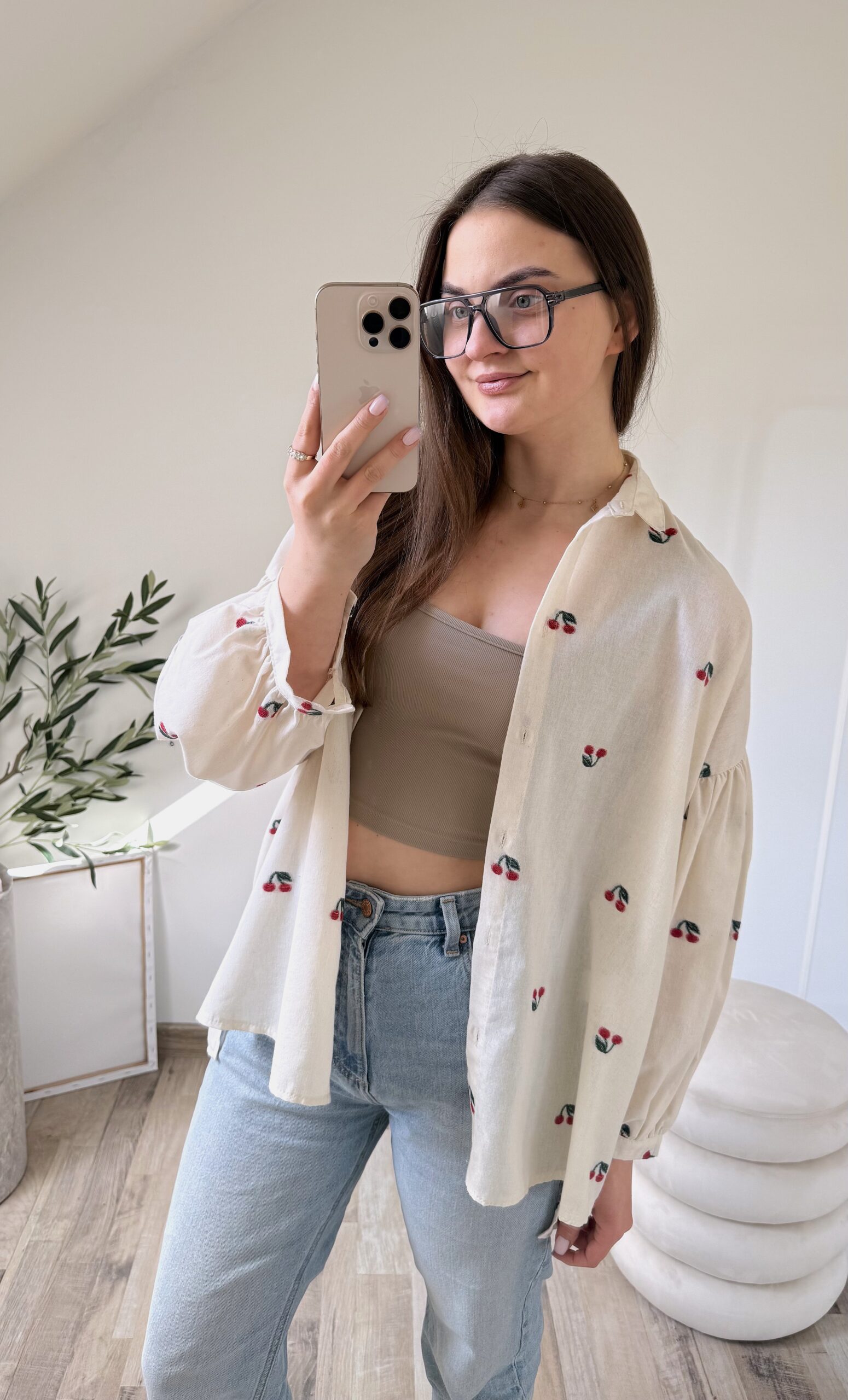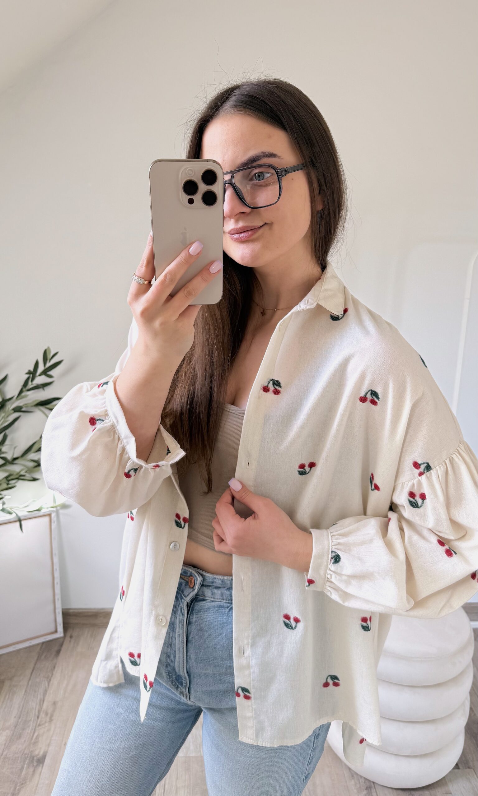 KOSZULA OVERSIZE W HAFTOWANE WISIENKI ♡
