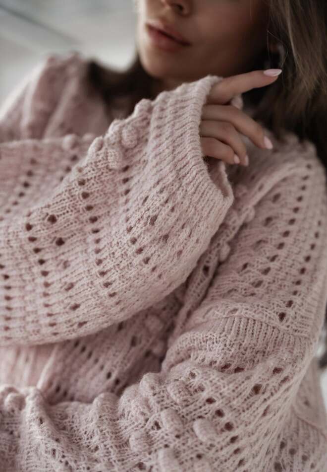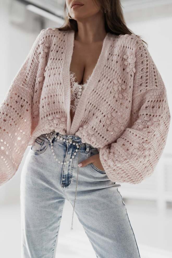 Ten kardigan sprawia, że w powietrzu czujemy już wiosnę i lato. Model POLA polskiej produkcji to must have w szafie na chłodne letnie wieczory. A do tego ten pudrowy róż – wiosną kochamy takie odcienie! Haftowany, ażurowy splot sprawia, że wygląda lekko i stylowo. To będzie Twój nowy ulubiony i wyjątkowy sweter w szafie!